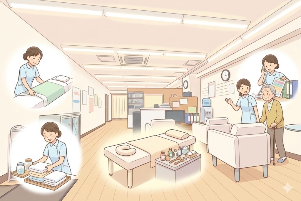そんな想いに応えてくれるのが、ワークサポート鶴見の本格施術業務です。
