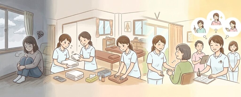 「人と関わるのが苦手だったけど、施術補助を通じて“ありがとう”をもらえるようになって自信がついた」